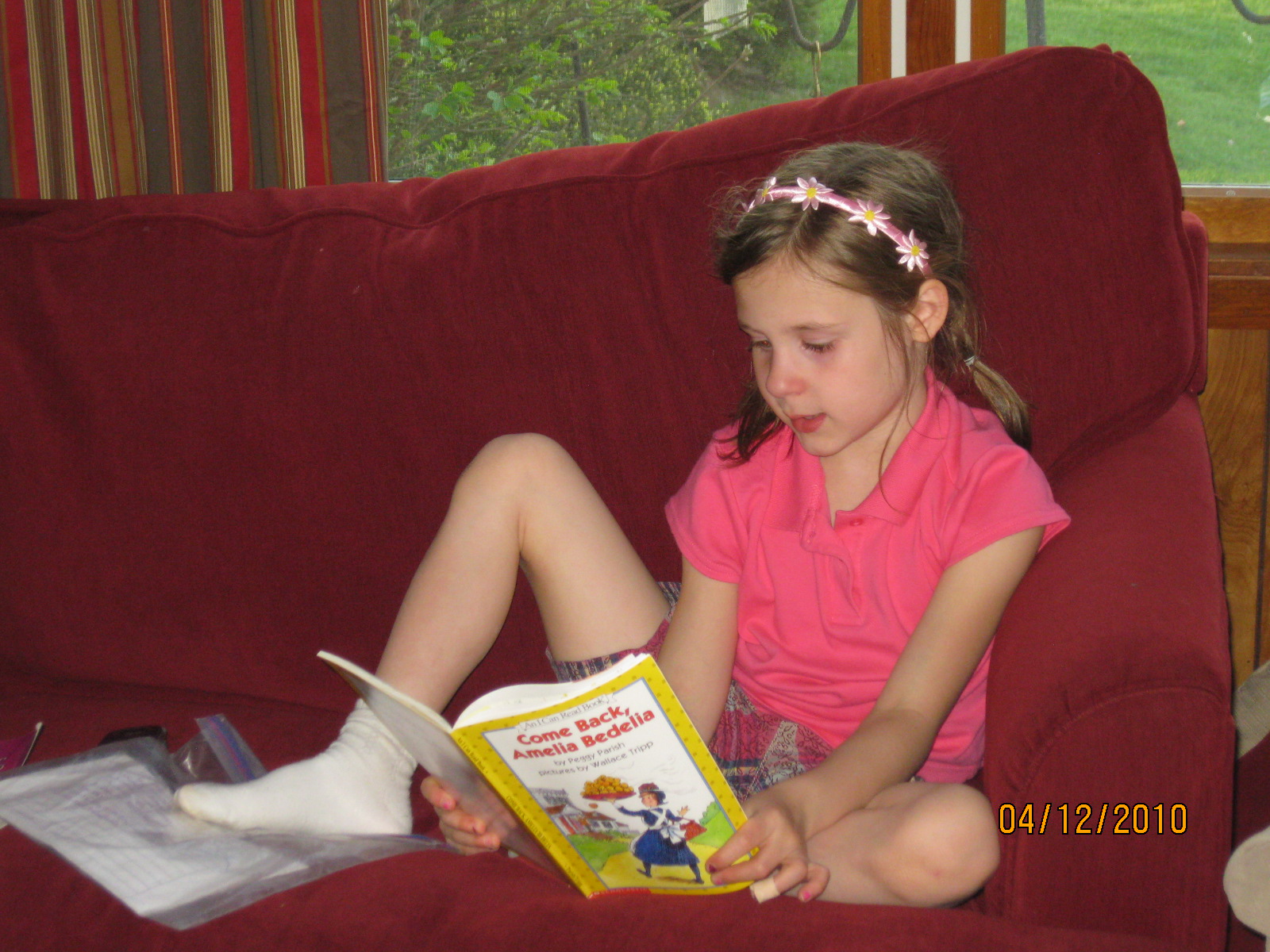 Calvin, 8 as of last March, is in 3rd grade and well…he’s our Calvin! He says his favorite subject in school is recess. His teacher says he always makes her smile. His current interests include anything medieval including castles, knights, swords, etc. If the weather is nice he can usually be found making a fort somewhere in the yard out of some junk he found in the barn. If the weather is not so nice, he has the living room set up as a fort and is fighting off his sisters with a laid-out tactical plan. True to his name he loves the Calvin & Hobbes books and even made a two-headed snow goon after our first good snow this year. Calvin also made his first communion back in May!